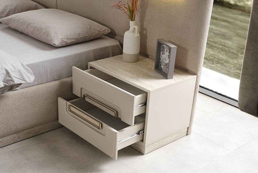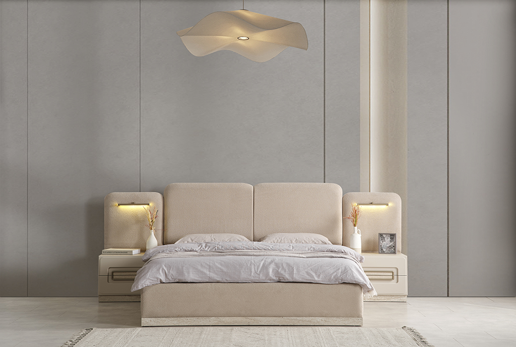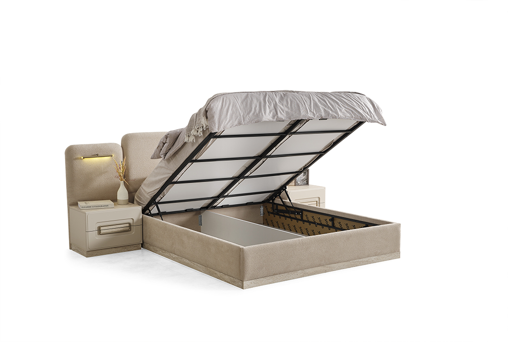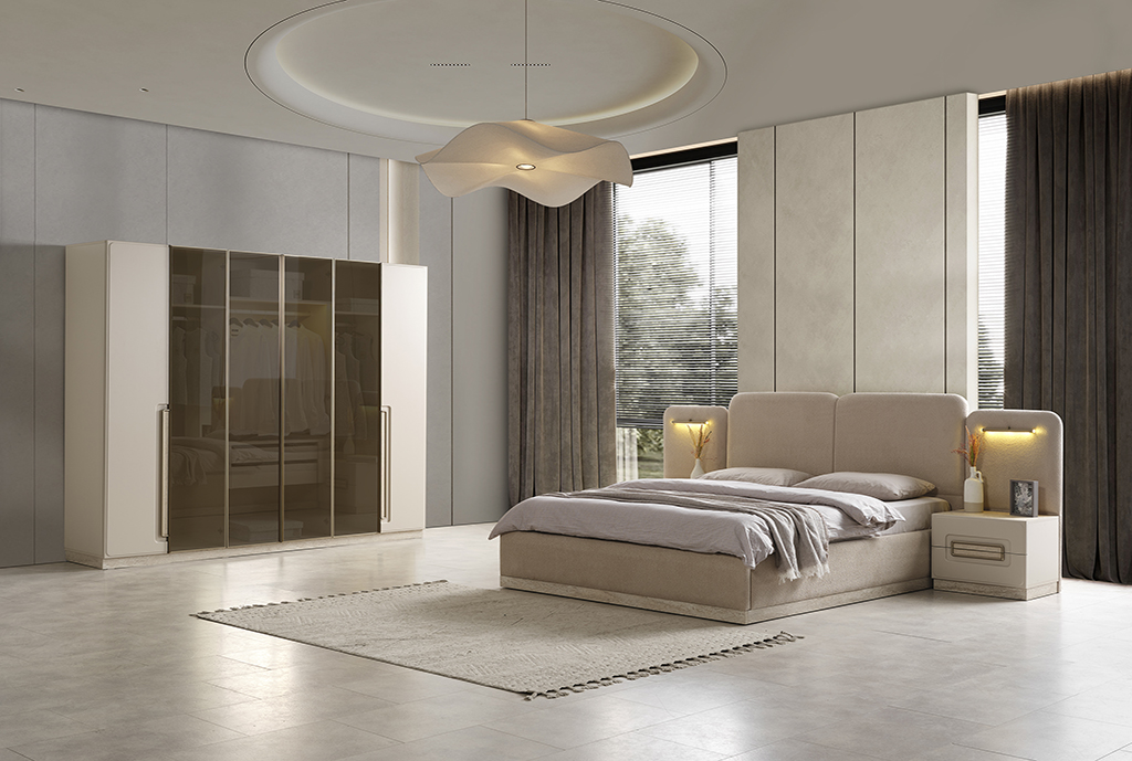 Takım İçeriği 6 kapaklı dolap, 1 adet karyola, 2 adet komodin, şifonyer ve aynadan oluşmaktadır.